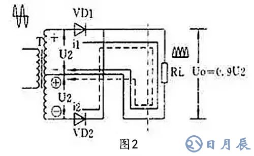 第二種是全波整流,全波整流則是要用到二個(gè)二極管,ASEMI工程上也會(huì)要求需要有帶中心抽頭的兩個(gè)次級(jí)線(xiàn)圈,這兩個(gè)次級(jí)線(xiàn)圈需要圈數(shù)相同,以保證相同的電阻。詳細(xì)的情況我們可以看下圖2,負(fù)載RL得到的就是全波整流電流,輸出電壓比半波整流電路要高。