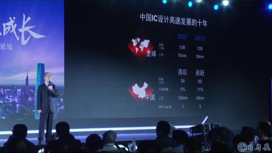 他回顧2012年,中國的集成電路設(shè)計(jì)業(yè)的產(chǎn)值已經(jīng)占到80億美元,在全球的占比已經(jīng)達(dá)到了11%,在營收成長(zhǎng)的同時(shí),也看到在技術(shù)上跟進(jìn);在2007年的時(shí)候,當(dāng)全球是在用65納米的時(shí)候,中國用的是0.13微米,2012年全球最領(lǐng)先設(shè)計(jì)公司在用28納米的時(shí)候,中國用的是40納米,也就是從原來的落后兩個(gè)時(shí)代追趕到了落后一個(gè)時(shí)代。