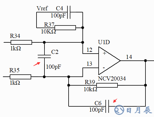 在電機(jī)的電路設(shè)計(jì)過程中需著重考慮運(yùn)放電路的設(shè)計(jì),下面為相電流采樣電路的設(shè)計(jì)說明。本文中采用的是ON公司的NCV20034汽車級運(yùn)放芯片,擁有高達(dá)7MHz的增益帶寬,集成4路獨(dú)立運(yùn)放于一身。