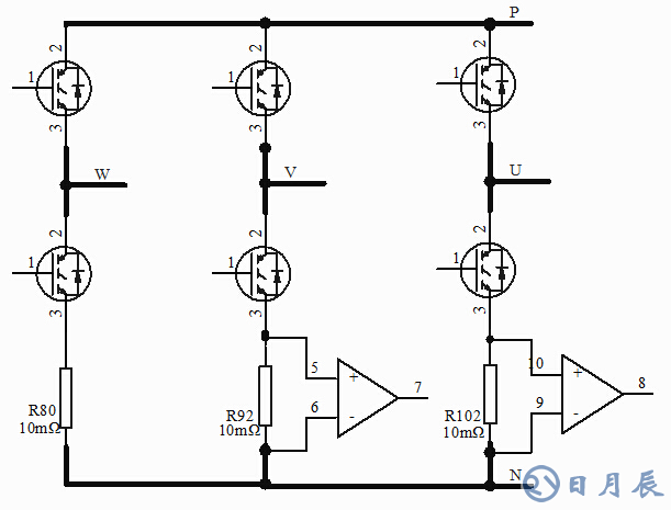 對于320V供電空調(diào)壓縮機(jī),電機(jī)內(nèi)阻0.2Ω,如果采樣電阻合適,則對回路沒有什么影響。如果采樣電阻的阻值過大,會(huì)引起電壓的損耗,使能量效率變低,較大的阻值會(huì)使負(fù)載電壓發(fā)生偏移,產(chǎn)生電磁干擾,產(chǎn)生系統(tǒng)對噪聲敏感的問題。當(dāng)確定好阻值后還需要考慮電阻的穩(wěn)定性能和阻值誤差。
