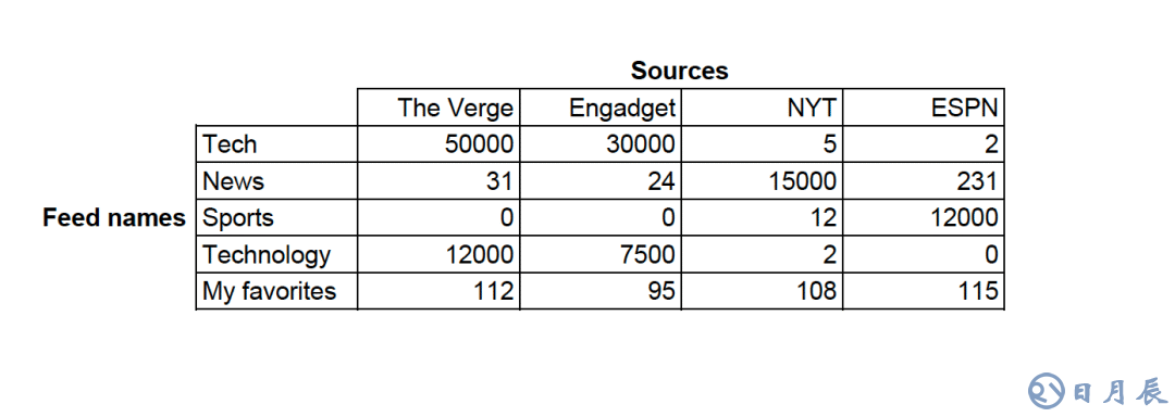 想要理解我是如何訓(xùn)練模型識(shí)別主題的,可以想像一個(gè)矩陣或者表格,其中有關(guān)于主題和信息源的數(shù)據(jù)。