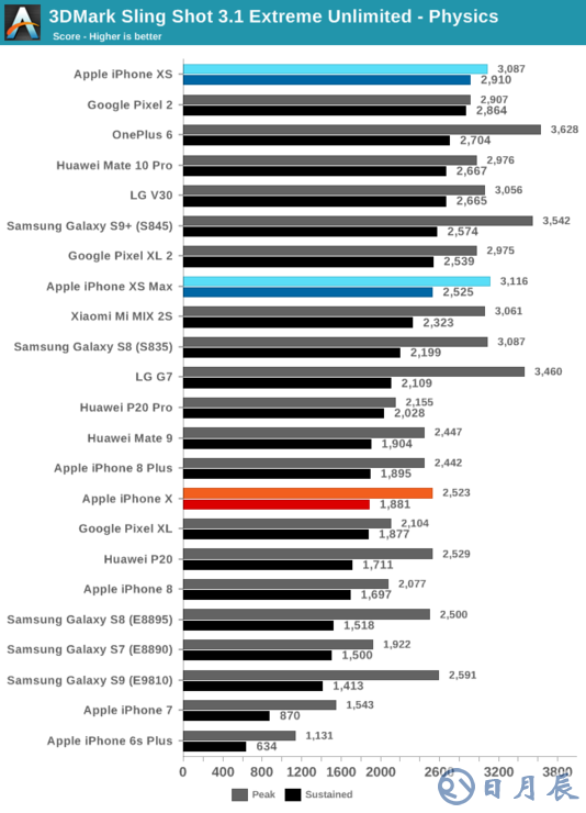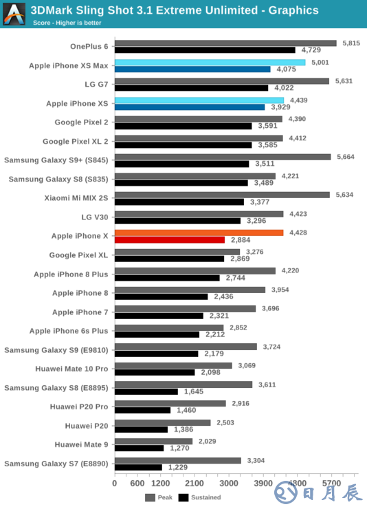 在3DMark測(cè)試的圖形部分,iPhone XS的持續(xù)性能比去年的iPhone X提高了41%,不過(guò)一加6更加奔放的功耗和溫度限制讓其性能仍然更勝一籌。