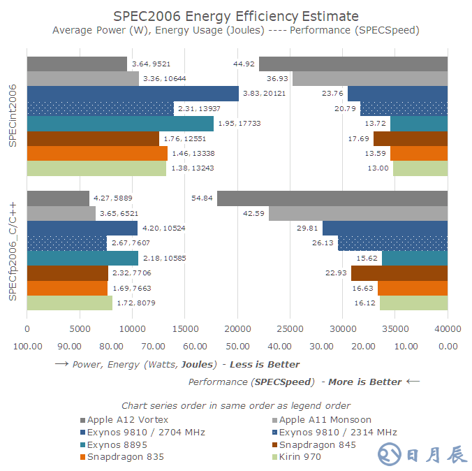 這也讓我們對(duì)今年發(fā)布的三星M3 架構(gòu)有了更好的認(rèn)知,即只有當(dāng)功耗在可控范圍內(nèi)時(shí),更高的功耗才能帶來(lái)更高的性能(Exynos 9810的功耗是蘋果上代A11的2倍,但其性能卻只有A11的一半)。