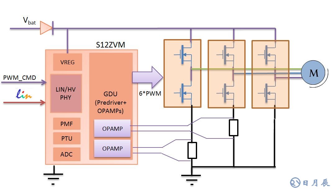 S12ZVM系列產品是NXP為BLDC和PMSM控制精心設計的單芯片解決方案,內部集成了S12Z內核的處理器、柵極驅動器、穩(wěn)壓器、兩路運放、CAN控制器、LIN收發(fā)器等,完全滿足電機控制的應用,其資源基本上是為電機控制量身打造!