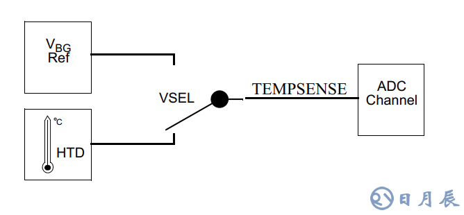 S12ZVM內部集成溫度傳感器,可直接檢測芯片晶圓溫度。S12ZVM的Vbg REF和溫度傳感器復用同一個內部ADC通道,可以通過VSEL選擇,運行中可以更新,方便又省心。同時還可以設置高溫檢測中斷,如果高于設置的閾值,則直接觸發(fā)中斷。