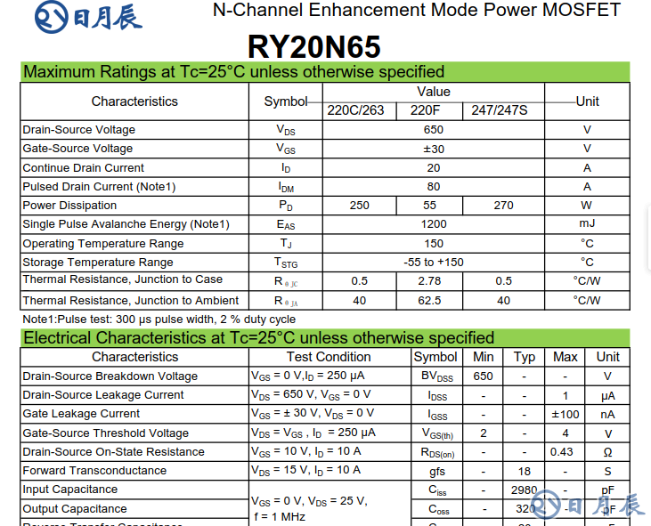 作為日月辰推出的650V最大電流的MOS管,其產(chǎn)品技術要求完全可以達到國外先進水平。擁有低內(nèi)阻,主要用于LED電源,開關電源,小家電等高壓轉換低壓上。 下面是其參數(shù): 封裝形式有TO-220F ,TO-220,TO-247.TO-263
