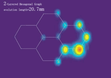 研究人員將六方粘合樹的層數(shù)逐步增大到8層,結(jié)構(gòu)復(fù)雜度不斷提升。如圖三所示,在幾種不同層數(shù)結(jié)構(gòu)中的最優(yōu)到達(dá)情形中,出口波導(dǎo)都會(huì)聚了比大部分其他波導(dǎo)更高的光強(qiáng),而經(jīng)典情形是當(dāng)出口節(jié)點(diǎn)達(dá)到最優(yōu)時(shí),所有節(jié)點(diǎn)的光強(qiáng)實(shí)現(xiàn)平均分配,因而最優(yōu)到達(dá)效率非常低。