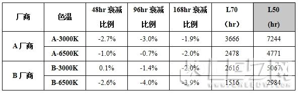 表4 85℃、標(biāo)稱電流光通量衰減比例
