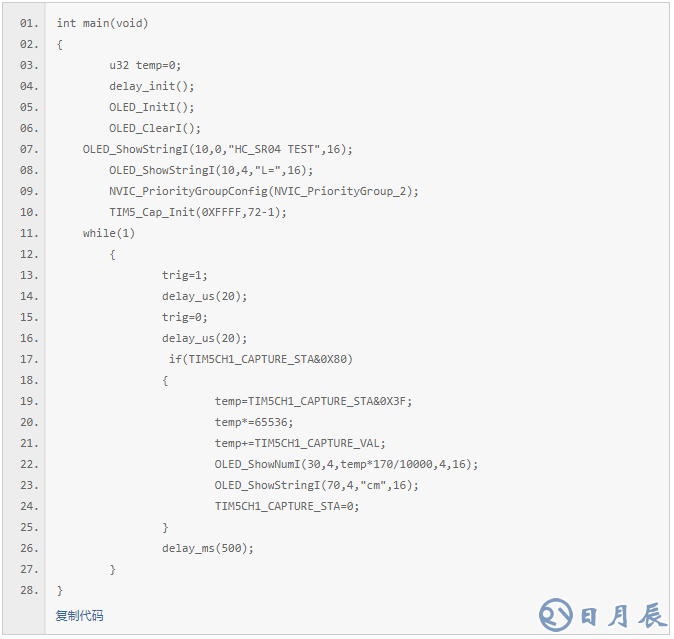 超聲波測距模塊與開發(fā)板的連接關(guān)系為: