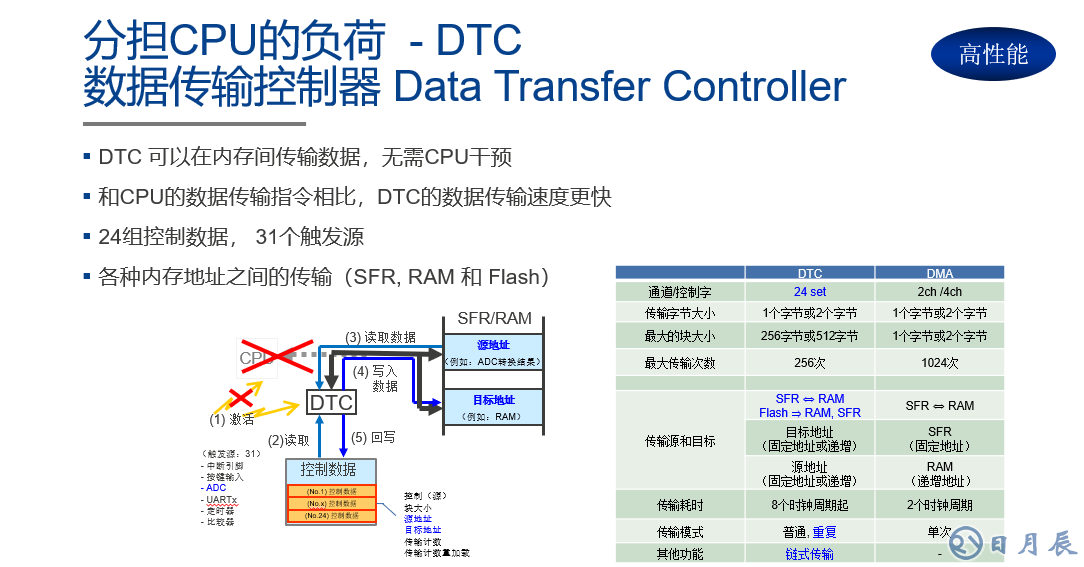 再來(lái)看一下如何使用DOC和DTC功能。DOC和DTC是為分擔(dān)CPU負(fù)荷而專(zhuān)門(mén)設(shè)計(jì)的,它的好處在于兩者可用于HALT模式和SNOOZE模式,除了初始化例程和ISR之外,不需要軟件開(kāi)發(fā)。此外,DTC可以在各種內(nèi)存地址之間傳輸(SFR,RAM和Flash)24組控制數(shù)據(jù)和23個(gè)觸發(fā)源,無(wú)需CPU干預(yù),和CPU的數(shù)據(jù)傳輸指令相比,DTC的數(shù)據(jù)傳輸速度也更快。