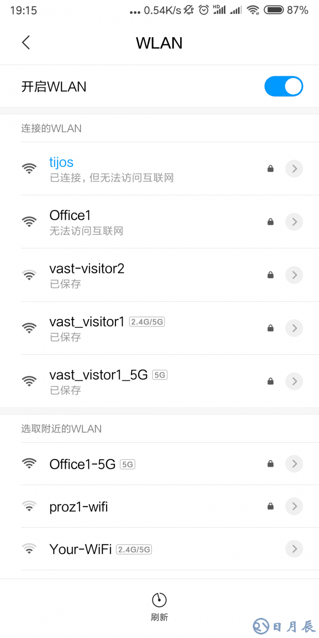 手機(jī)啟動(dòng)WiFi并連接AP熱點(diǎn):tijos,顯示連接成功
