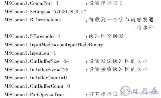 首先要初始化串口,必須將MSComm控件的通信特性設(shè)置為同51單片機(jī)一致方可正常通信。