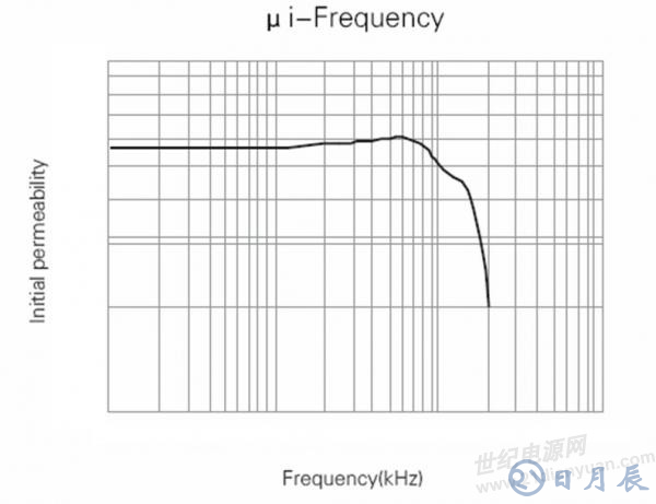 這個磁導(dǎo)率和頻率的關(guān)系沒那么簡單的,看看下面的曲線圖:從低頻到一定頻率,磁導(dǎo)率是不變的,然后隨著頻率上升磁導(dǎo)率上升,再高頻就下降了。