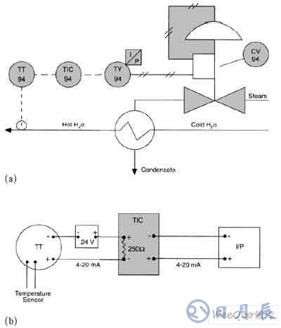 在某些情況下,I/P經(jīng)常被用在溫度控制環(huán)路中。在這種控制環(huán)路中主要用蒸汽流來(lái)控制環(huán)路。如圖3中所示,一個(gè)環(huán)路組成主要為:一個(gè)用來(lái)測(cè)量溫度的熱耦或RTD、一個(gè)給控制器傳輸電信號(hào)的溫度傳送器,一個(gè)將控制器輸出信號(hào)變?yōu)閴簭?qiáng)的I/P以及一個(gè)控制蒸汽流動(dòng)的氣動(dòng)閥門。