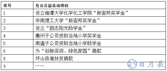 值得一提的是,新宙邦作為一個有高度責(zé)任感和使命感的企業(yè),積極支持參與社會公益活動。近年來新宙邦所參與的公益活動如下: