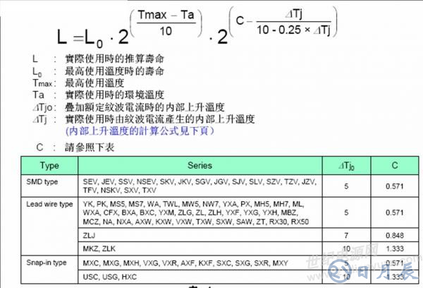 1. 工作溫度不能超 Tmax、ripple 電流不能超最大可接受 ripple 電流、電壓不能超 Vmax,只要有一項(xiàng)超了,就不適合用公式計(jì)算壽命,即使算過(guò)了也沒(méi)有意義。