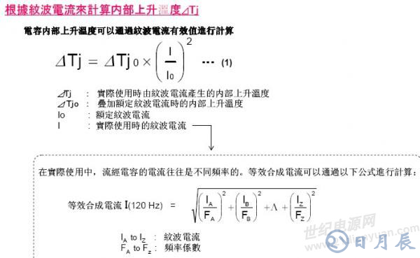 5. 最大允許紋波電流:此項(xiàng)所說(shuō)的紋波電流同2項(xiàng)中的紋波電流,不是同一個(gè)概念,而是經(jīng)過(guò)溫度補(bǔ)正系數(shù)、頻率補(bǔ)正系數(shù),與2項(xiàng)中的紋波電流綜合得出;