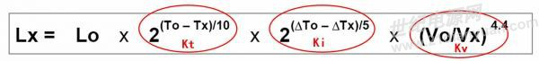 電解的實(shí)際使用壽命的計(jì)算,可用下面的公式表示: Lx=Lo·Kt·Ki·Kv