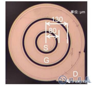 圖3:常關(guān)Ga2O3MOSFET的光學(xué)顯微照片