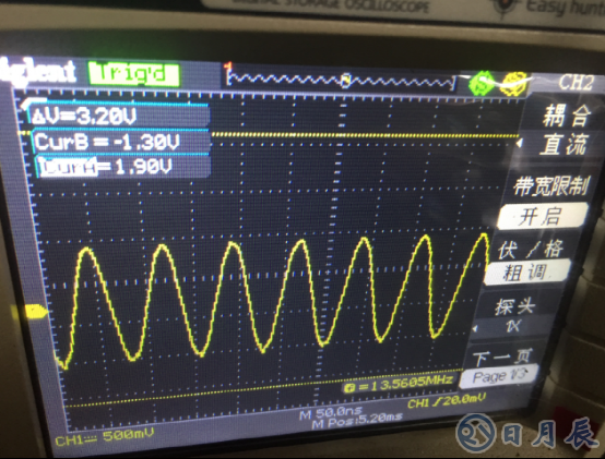 用示波器讀取PN512信號波形,正弦波非常好看,波形幅值是可以調(diào)節(jié)的,大家可以通過調(diào)節(jié)電路中的C3 C4 C6 C7來調(diào)節(jié)波形,正常情況下波形可以達(dá)到2V就可以了,幅值越小讀取的距離越近,但是幅值太大的話容易讀取不穩(wěn)定,具體大家可以自己調(diào)節(jié)一下。