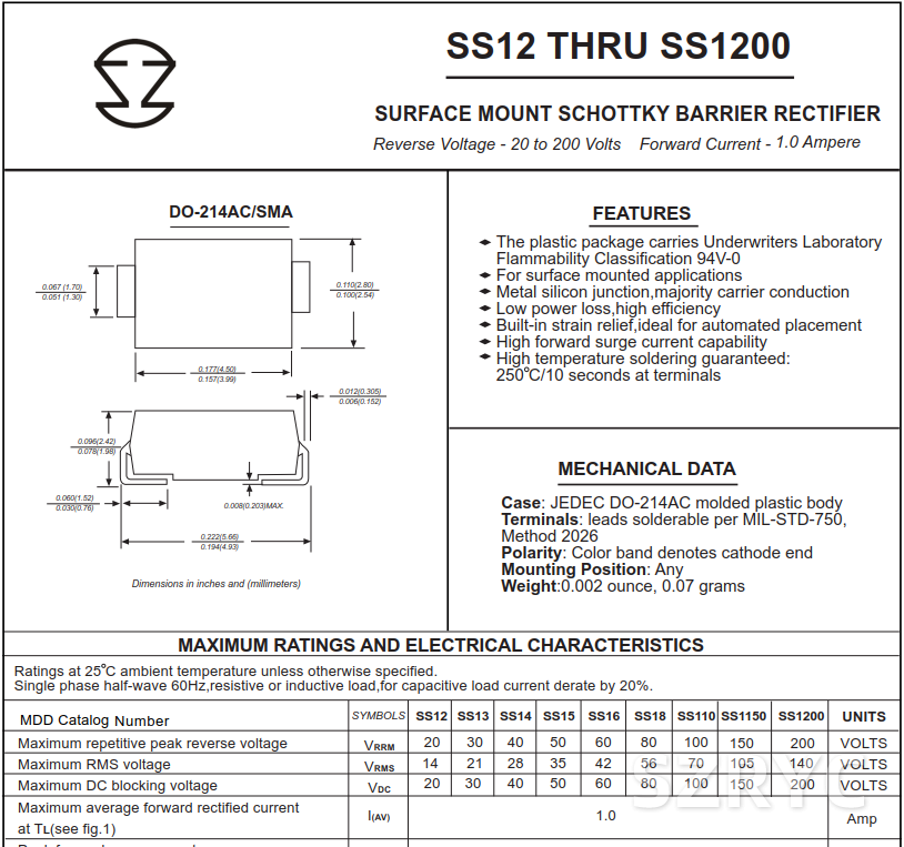 SS14是一款表面貼裝(SMD)的肖特基二極管,具有較低的正向壓降和較快的切換速度。