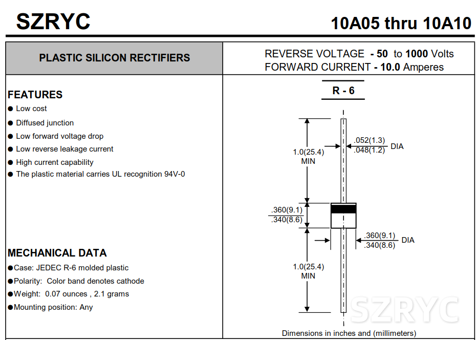 10A10是一種常見的整流二極管,其主要特性如下: