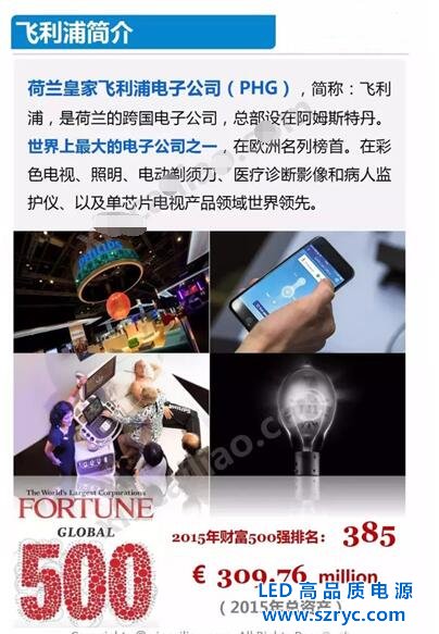 飛利浦成立于荷蘭,主要生產(chǎn)照明、家庭電器、醫(yī)療系統(tǒng)方面的產(chǎn)品。飛利浦公司,2007年全球員工已達(dá)128,100人,在全球28個(gè)國(guó)家有生產(chǎn)基地,在150個(gè)國(guó)家設(shè)有銷售機(jī)構(gòu),擁有8萬(wàn)項(xiàng)專利,實(shí)力超群。2011年7月11日,飛利浦宣布收購(gòu)奔騰電器(上海)有限公司,金額約25億元。2011年10月17日,飛利浦電子發(fā)布了第三季度財(cái)報(bào),第三季度凈利潤(rùn)同比下滑85.9%;同時(shí)宣布,飛利浦將在全球范圍內(nèi)裁員4500人。2013年1月底,飛利浦消費(fèi)電子業(yè)務(wù)已全部剝離,將聚焦優(yōu)質(zhì)生活,醫(yī)療和照明設(shè)備行業(yè)。