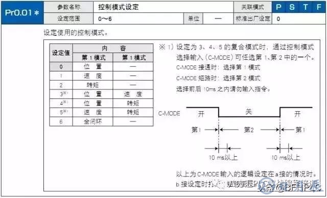 Pr0.01:伺服控制模式的設(shè)置。位置控制是缺省模式(Pr0.01=0),其他模式設(shè)置可參考如下: