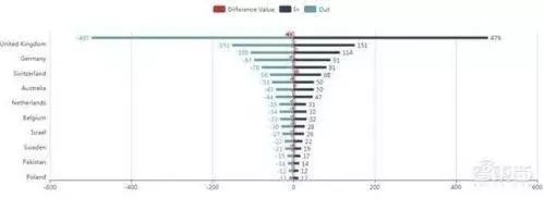 可以看出,各國(guó)人才的流失和引進(jìn)是相對(duì)比較均衡的,其中美國(guó)為人才流動(dòng)大國(guó),人才輸入和輸出幅度都大幅度領(lǐng)先。英國(guó)、 中國(guó)、 德國(guó)和瑞士等國(guó)次于美國(guó),但各國(guó)之間人才流動(dòng)相差并不明顯。