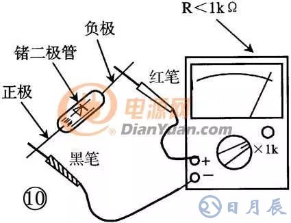 (b)先用萬用表判別普通二極管正、負(fù)電極的方法進(jìn)行檢查,即交換紅、黑表筆兩次測量管子兩引腳間的電阻值,正常時,所得阻值應(yīng)為一大一小。以阻值較小的一次為準(zhǔn),紅表筆所接的管腳步為負(fù)極,黑表筆所接的管腳為正極。