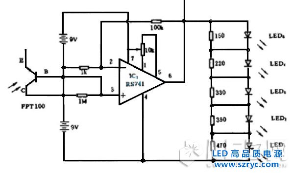 自帶鉛酸蓄電池充電LED應(yīng)急燈電路圖