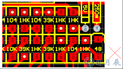 如此排版會(huì)給返修造成困難,返修時(shí)必須先拆數(shù)碼管,還有可能造成數(shù)碼管損壞。建議將數(shù)碼管底下的電阻排到Bottom面,如下圖: