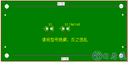 請(qǐng)將器件型號(hào)隱藏。尤其是器件密度高的電路板。否則,眼花繚亂影響找到焊接位置。如下圖: