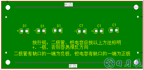 二極管、鉭電容的極性標(biāo)注應(yīng)符合行規(guī),以免工人憑經(jīng)驗(yàn)焊錯(cuò)方向。如圖: