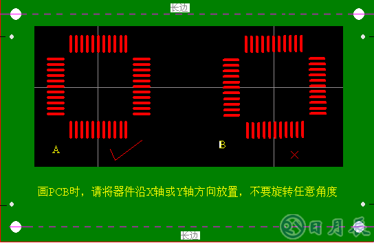 畫(huà)PCB時(shí),在長(zhǎng)邊方向要留不少于3mm的邊用于貼片機(jī)運(yùn)送電路板,此范圍內(nèi)貼片機(jī)無(wú)法貼裝器件。此范圍內(nèi)不要放置貼片器件。