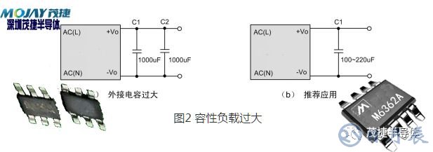 (1)電源模塊輸出端通常推薦增加一定的濾波電容,但在使用過(guò)程中,由于認(rèn)識(shí)不足等原因,使用了過(guò)大的輸出濾波電容。