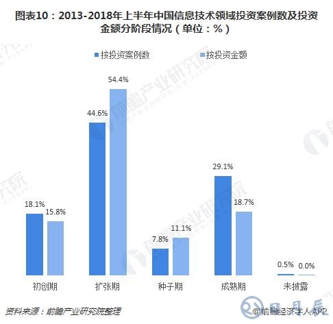 圖表2:2013-2018年上半年中國光電芯片產(chǎn)業(yè)投資階段分布(按投資金額)(單位:億元,%)
