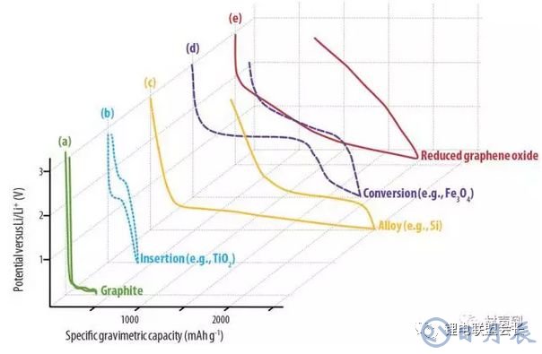 圖2 典型的鋰離子電池負極材料的充放電曲線
