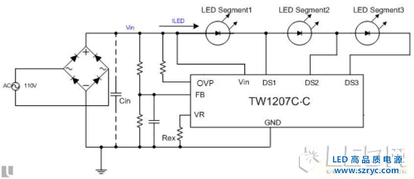 也有不少商家為了節(jié)約恒流芯片的成本,在恒流芯片處通過采用被動元器件(二極管,三極管,MOS)來控制恒流,通常這樣的方案在恒流精度以及開路保護,短路保護方面做得就不夠好。