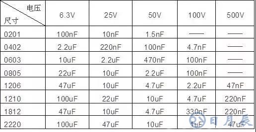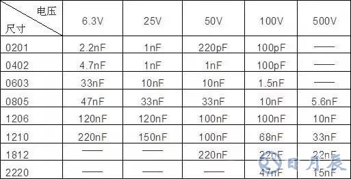 容量精度在10%左右,容量范圍較寬,常規(guī)100PF~47uF能生產。下表給出了X7R電容器可選取的容量范圍最大值。