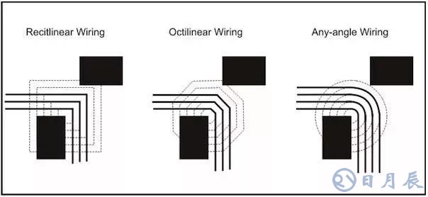 任意角度布線有許多優(yōu)勢。首先,不使用線段間的角度可以節(jié)省PCB空間(多邊形所占的空間總是要大于內(nèi)切圓)。