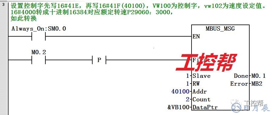 1. 為驅(qū)動(dòng)設(shè)置 RS485 總線地址。• p29004 = 12. 通過參數(shù) p29007 選擇 Modbus 協(xié)議。• p29007 = 23. 通過參數(shù) p29008 選擇 Modbus 控制源。• p29008 = 1(p29008 = 1:設(shè)定值和控制字來自于 Modbus PZD)4. 通過參數(shù) p29009 設(shè)置傳輸波特率。• p29009 = 6(9600波特率)5. 保存參數(shù)并重啟驅(qū)動(dòng)。6. 設(shè)置驅(qū)動(dòng)的工作模式為 IPOS控制模式。7. 配置 PLC 相關(guān)參數(shù)。