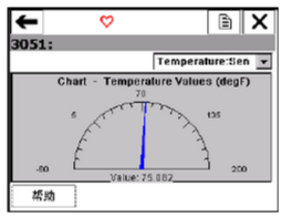從下拉菜單中選擇的變量顯示為彩色長指針,而其他變量顯示為彩色短指針。顏色顯示由設(shè)備描述決定,可能因設(shè)備不同有所變化。每個儀表盤圖表最多僅有三個變量。顯示的標(biāo)簽和軸均由設(shè)備生產(chǎn)商決定。