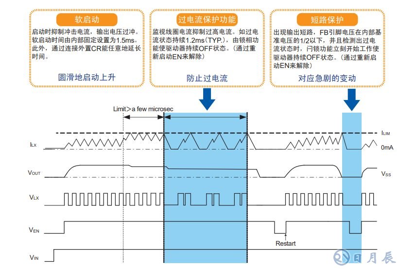 XC9246/XC9247系列產(chǎn)品備有6個引腳同時內(nèi)置了軟啟動、過電流保護(hù)(積分閂鎖),短路保護(hù),等功能。
