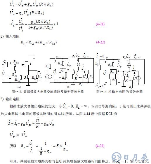 共漏極放大電路如圖4-12 所示。由圖可見,共漏極放大電路
