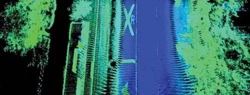 在激光雷達圖像中顏色編碼反映強度,車道標志會“浮現(xiàn)”出來