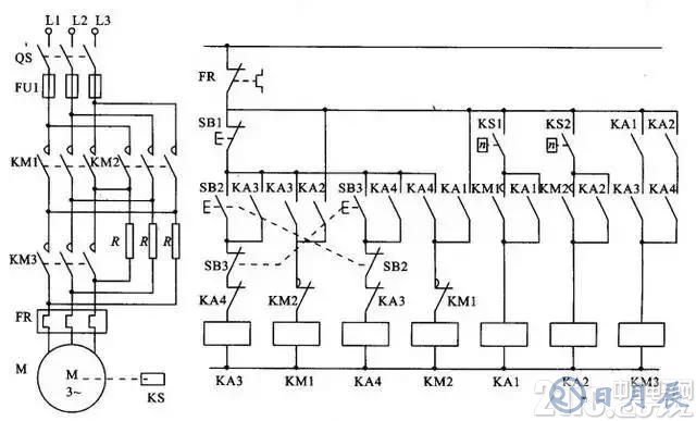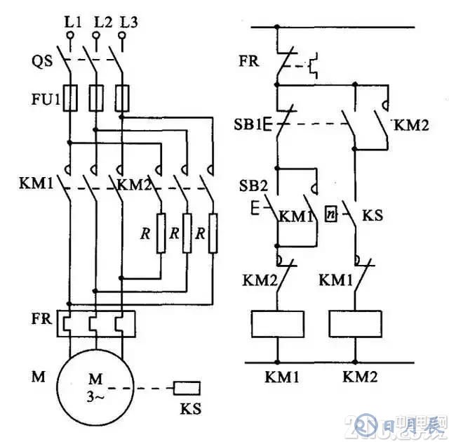 19、具有反接制動(dòng)電阻的可逆運(yùn)行反接制動(dòng)的控制線路