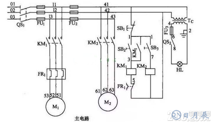 第三步:了解主電路中所用的控制電器及保護電器。前者是指除常規(guī)接觸器以外的其他控制元件,如電源開關(轉換開關及空氣斷路器)、萬能轉換開關。后者是指短路保護器件及過載保護器件,如空氣斷路器中電磁脫扣器及熱過載脫扣器的規(guī)格、熔斷器、熱繼電器及過電流繼電器等元件的用途及規(guī)格。一般來說,對主電路作如上內容的分析以后,即可分析輔助