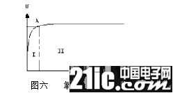 與此相對應(yīng)的伏安特性如圖六所示。可以將伏安特性劃分為兩個工作區(qū)域: I是小電流區(qū),II是大電流區(qū),A稱為轉(zhuǎn)折點(diǎn)。