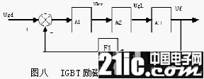 Ugl是功率環(huán)節(jié)A2的輸出(平均值)。我們由圖二及分析知: 在IGBT開關(guān)勵磁中,輸入、輸出及占空比的關(guān)系為: